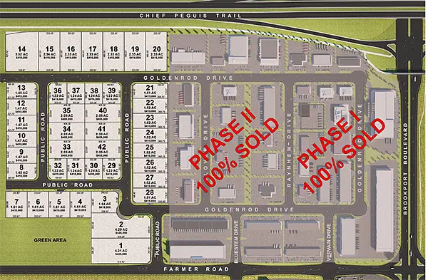 Whiteland began marketing Phase I of BrookPort Business Park, 80 acres of fully serviced, industrial land in 2018, and the 26 lots sold out in under a year. Phase II, an additional 80 acres, was announced in June 2020 and six months later all 36 lots have been sold. Construction is well underway in Phase I and site preparations have commenced in Phase II.