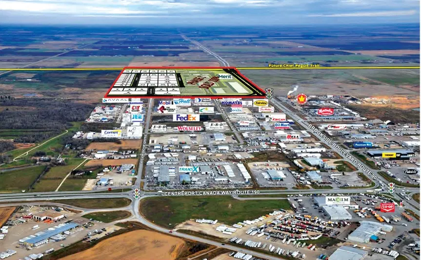 global trade. - Excellent frontage on Brookside Boulevard, Farmer Road & future Chief Peguis Trail.